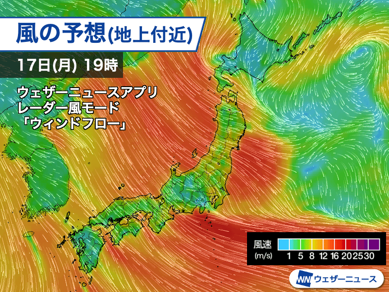 東日本や北日本では、夜にかけてさらに風が強まる予想です。また、全国的に明日にかけて風の強い状況が続きます。飛来物や交通機関への影響も心配されますので、十分注意してください。