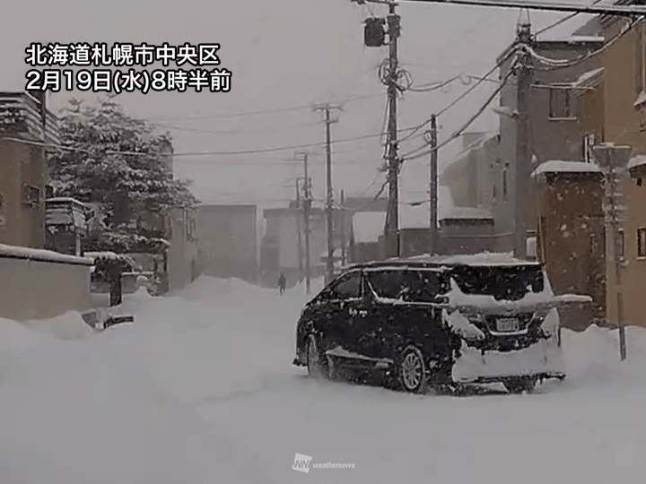 石狩湾収束線は今後、ゆっくりと東に移動する予想で、石狩平野全体では昼過ぎにかけて断続的に強い雪が降る見込みです。札幌市の中心部でも雪が勢いを増して積雪が急増するおそれがあるため、路面状況の悪化や視界不良に警戒をしてください。