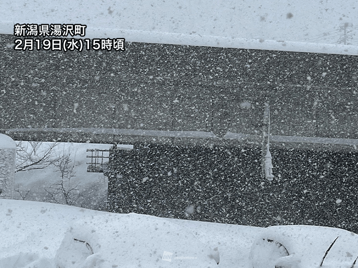 寒波の襲来以降、積雪が大きく増えていて、15時時点では新潟県津南町で今シーズン最多を更新する354cmを観測。早朝に499cmまで積雪が増加した青森県青森市・酸ケ湯は雪が落ち着いたため488cmと若干減少しました。