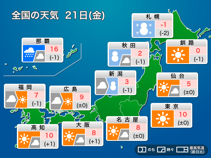 今日2月21日(金)の天気予報