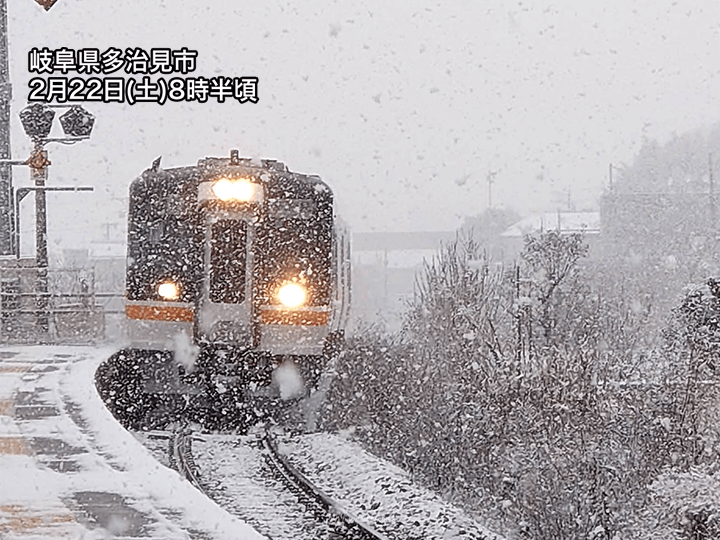 昼前にかけて雪の降りやすい状況が続き、岐阜県内を中心にさらに積雪が増えるおそれがあります。また、活発な雪雲は次第に南下する予想で、この後は三重県北部でも雪の積もる所がある見込みです。路面状況が悪化することによるスリップなどに注意をしてください。