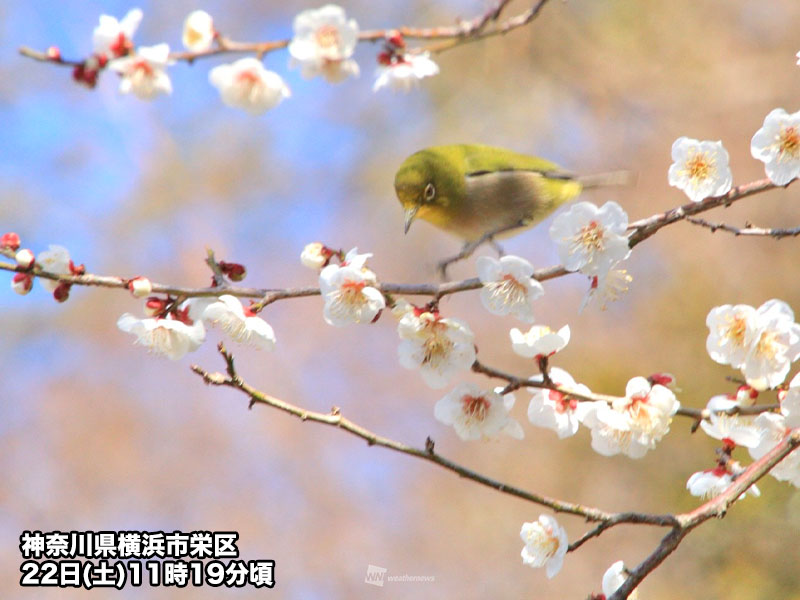 今年の梅の開花は平年より遅い所が多く、東京では平年より7日遅い1月29日、香川県・高松では平年より35日遅い2月17日に開花となりました。