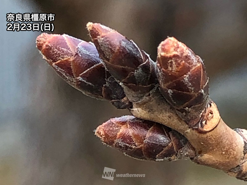 この冬は断続的に寒気が南下したことで気温の低くなる日があり、全国的に休眠打破は行われているとみられます。2月中旬にかけても寒波の影響で西日本や東日本は気温の低い日が続きました。この数年は2月に季節の進んだ暖かさとなることが多かったですが、今年は気温の低い日が多く「小さく硬い」つぼみが多い報告が多くなったと考えられます。