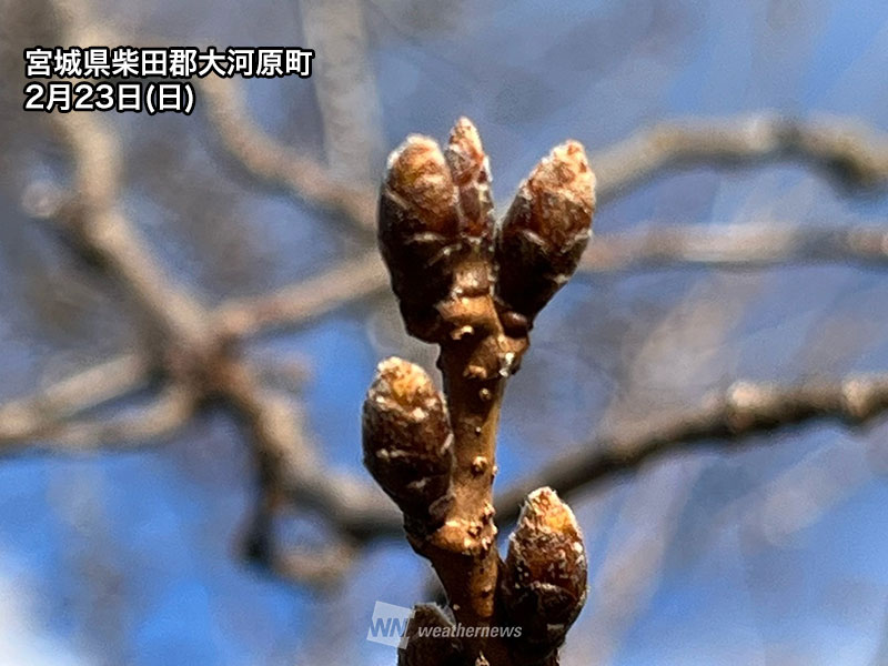 桜のつぼみの生長がスタート! 寒波の影響で生長に遅れ