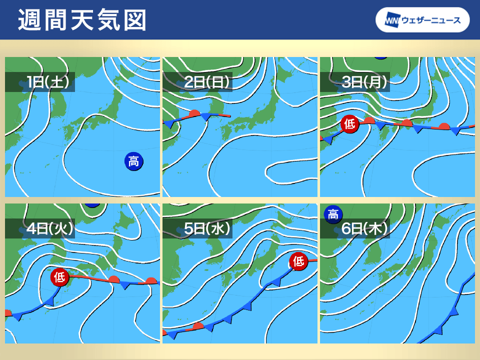 3月2日(日)頃から、西から前線が接近、本州付近に停滞する予想で来週中頃にかけて全国的に天気が崩れる見込みです。