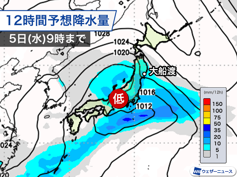 低気圧が発達しながら近づく4日(火)の夜から5日(水)にかけて、ようやく広範囲でまとまった降水となる見通しです。ただ、寒気の影響で雨ではなく雪で降る可能性があり、山火事の沈静化にどの程度の貢献があるかははっきりとしません。