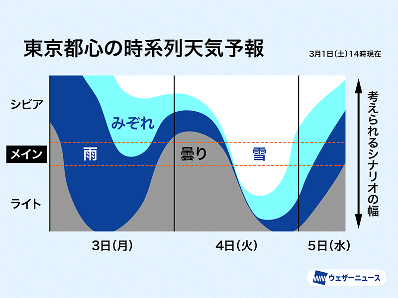 東京都心は4日(火)午後に雪か