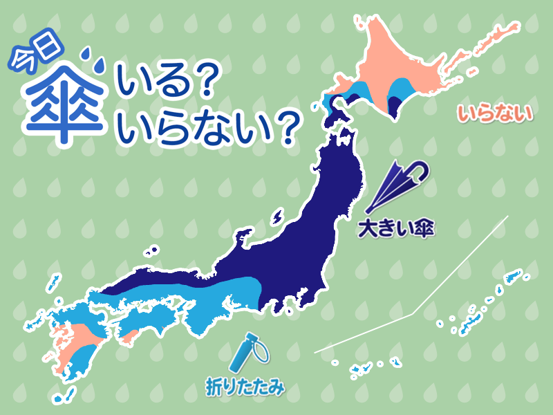 また、東海や西日本でも引き続き雨が降りやすく、油断のできない空です。折りたたみ傘をお伴にお出かけください。