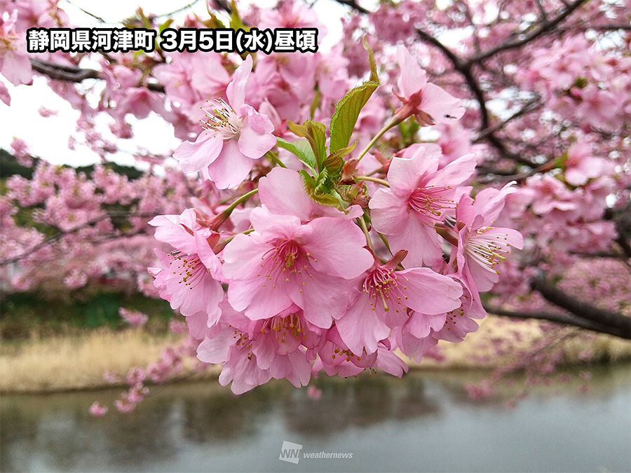 今日3月5日(水)の時点では、町内の多くの見どころで満開を迎えていて、見頃は来週にかけて続くとみられます。当初は2月28日(金)までの予定だった河津桜まつりも、3月9日(日)まで開催期間が延長されていますので、首都圏の方もぜひ足を運んでみてはいかがでしょうか。