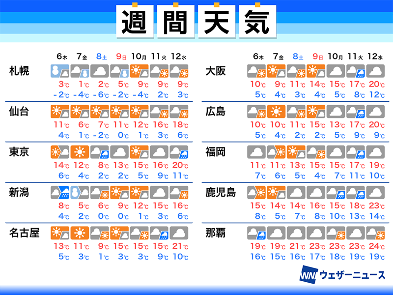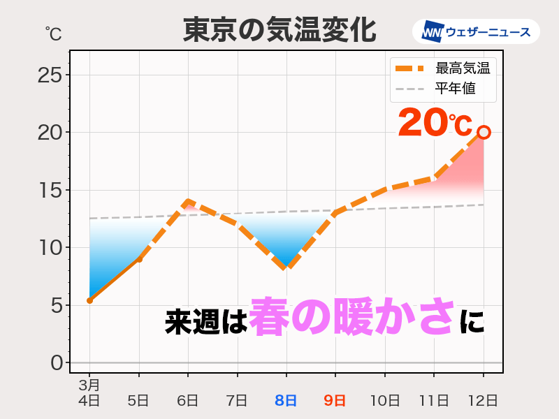 来週は全国的に気温上昇 東京や大阪は20℃まで上がる日も
