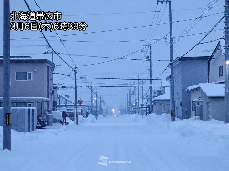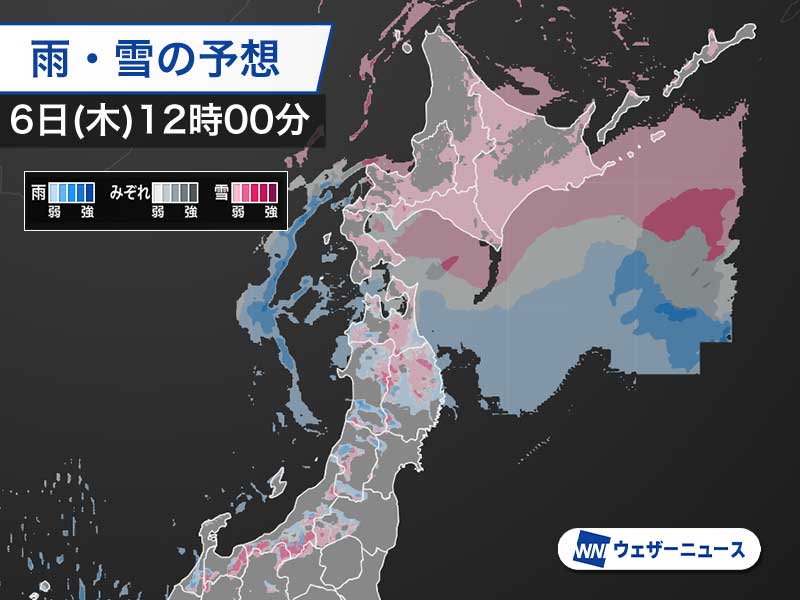 昨夜から今日6日(木)にかけては低気圧が三陸沖を北東に進み、北海道から東北北部の太平洋側を中心に雪が強まっています。