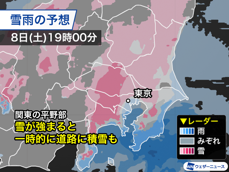 内陸部を中心に道路が白くなるほどの積雪が予想されます。東京都心など都市部では芝生にうっすら程度の見通しですが。雪が強まった場合は一時的に道路に積もってもおかしくありません。雪が降り出してからノーマルタイヤで走行するのは念のため避けるようにしてください。