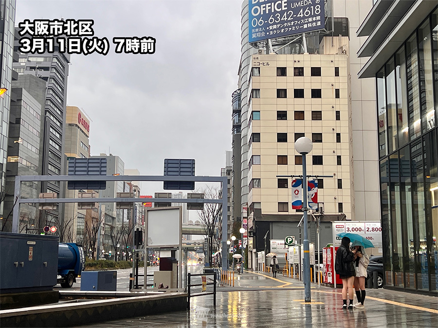 大阪や名古屋で朝から雨 傘を持って外出を