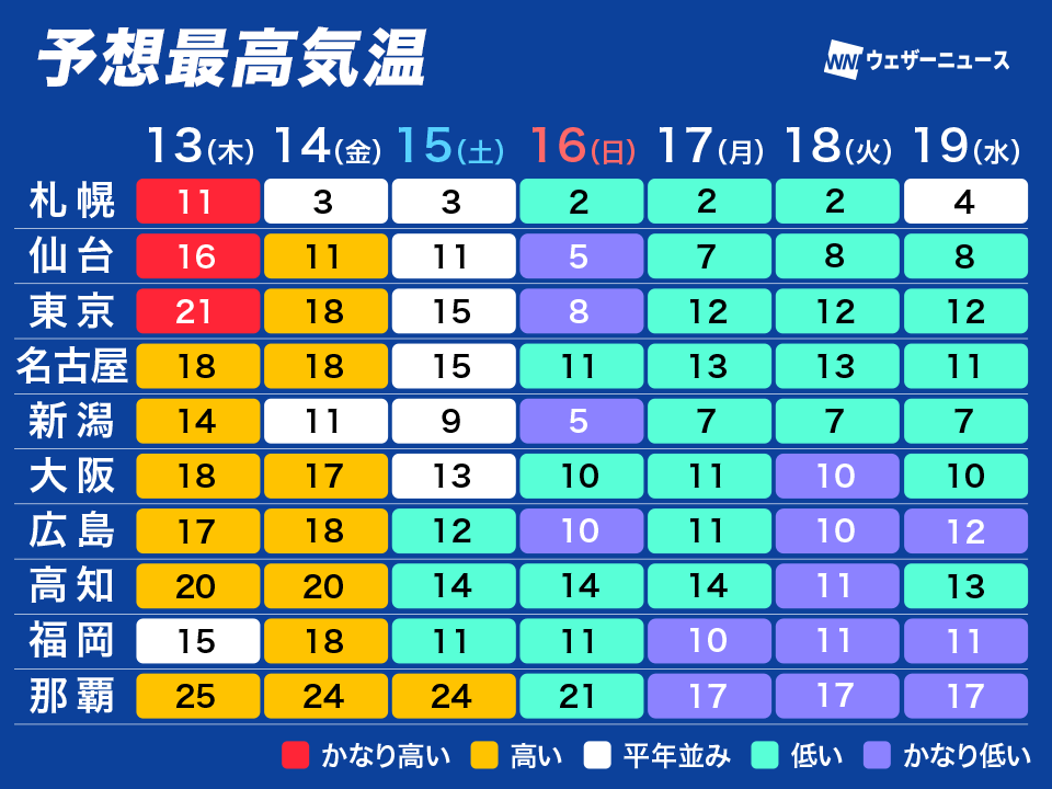 土曜日までは関東以西で春の陽気 日曜日から冬の寒さに逆戻り