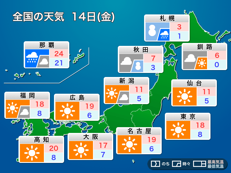 明日3月14日(金)の天気予報…