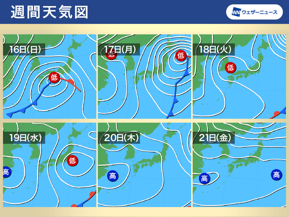 来週中頃も発達した低気圧が通過