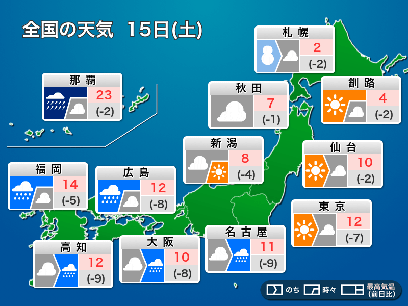 今日3月15日(土)の天気予報…