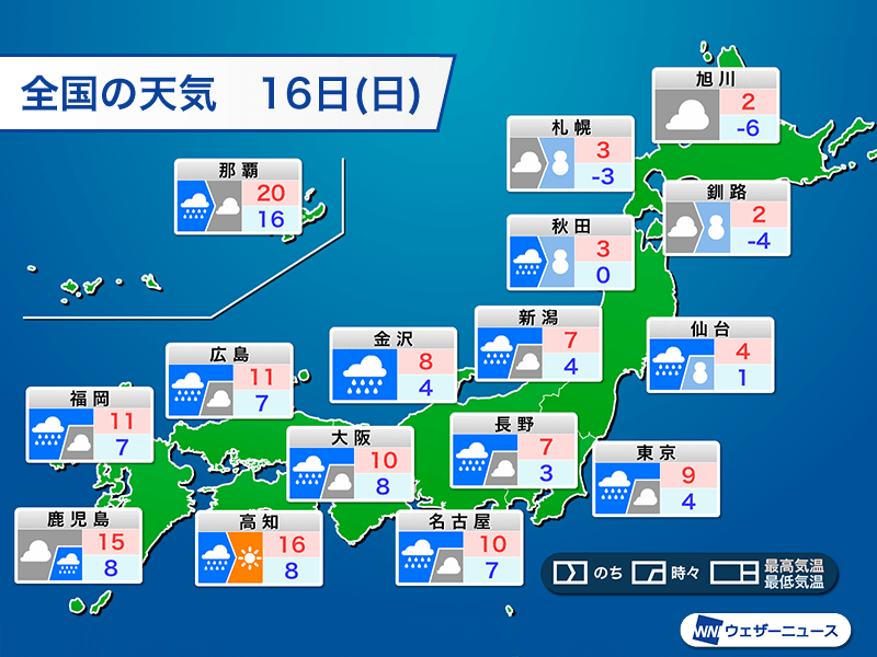 九州や中国などは昼に気温低下 明日は関東なども寒い一日に