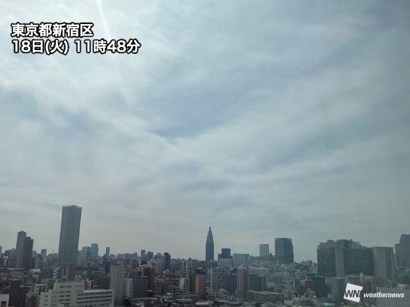 夜遅くになると紀伊半島付近で低気圧が発生します。明日19日(水)の朝にかけて発達しながら東日本の南岸を通過するため、西から活発な雲が広がる見通しです。