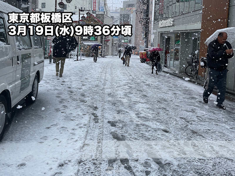 10時時点で埼玉のアメダスで2cm、東京で1cmの積雪を観測しました。東京で積雪が観測されるのは3月4日(火)以来です。