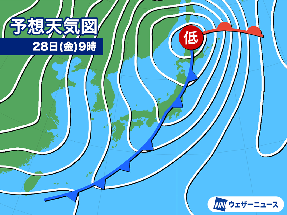 来週後半は寒冷前線が通過 全国的に天気崩れる 風雨の強まりに注意