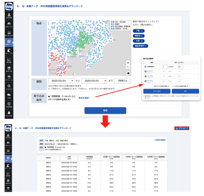 ③WNI雨量観測情報過去データ検索&ダウンロード