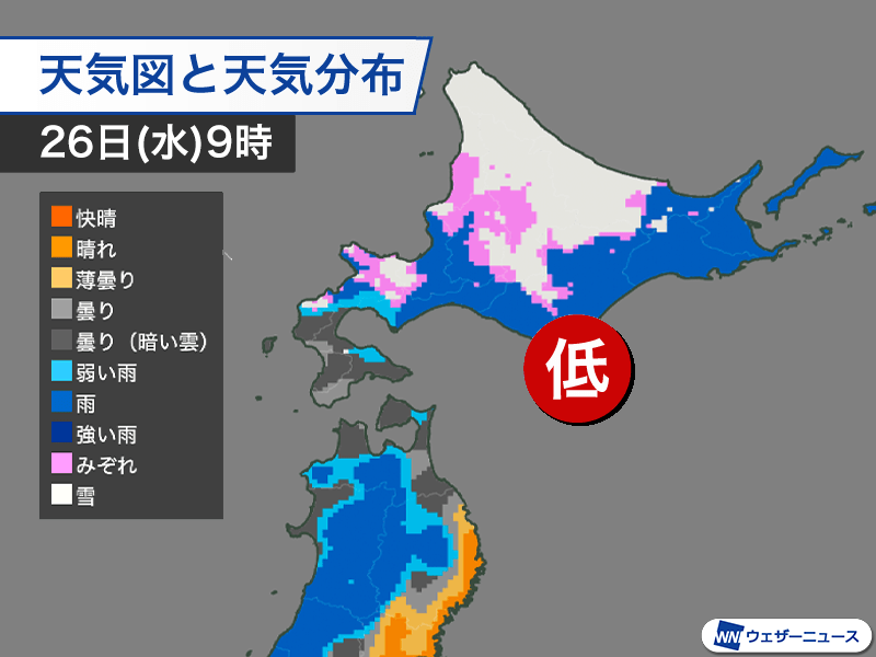 北海道など明日の夜遅くから雨や雪が強まる 明後日にかけて荒れた天気に
