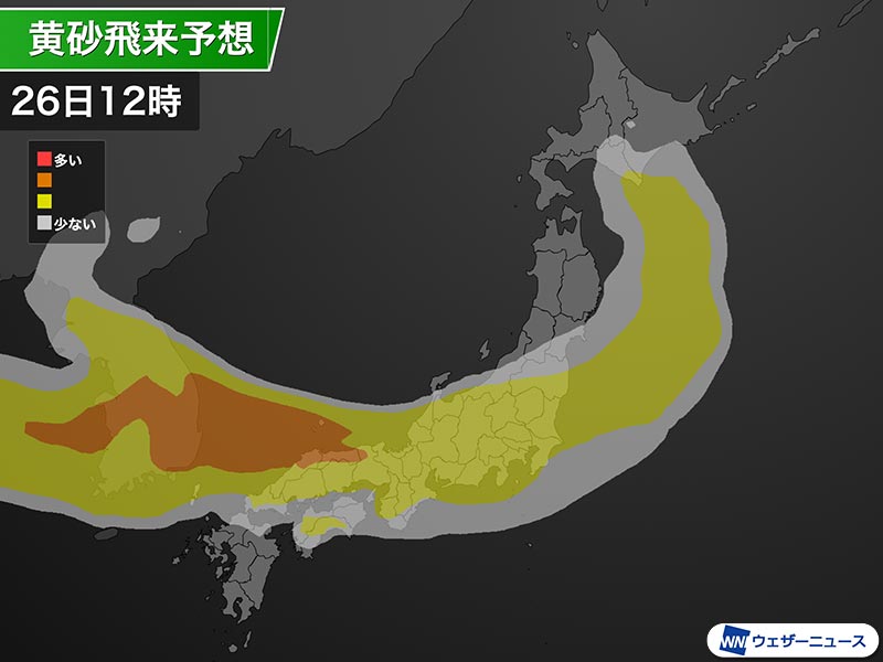 黄砂の影響は、明日26日(水)にかけても続く予想です。