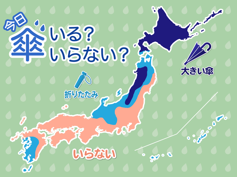 そのほか東北〜北陸付近にかけても低気圧や前線の影響を受け、雨の降ることがあります。折りたたみ傘をお持ちください。