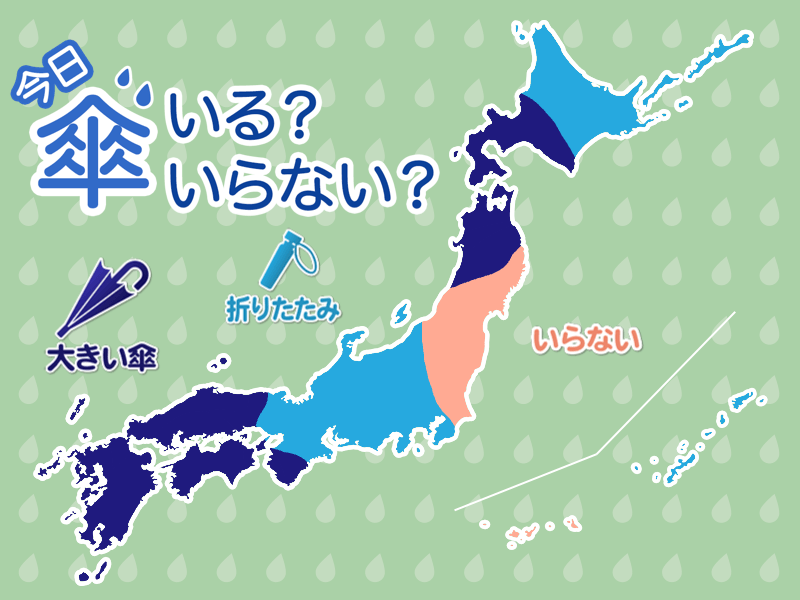 関東南部も夜遅くは雨が降り出す可能性があります。帰宅が遅くなる方は折りたたみ傘があると安心です。