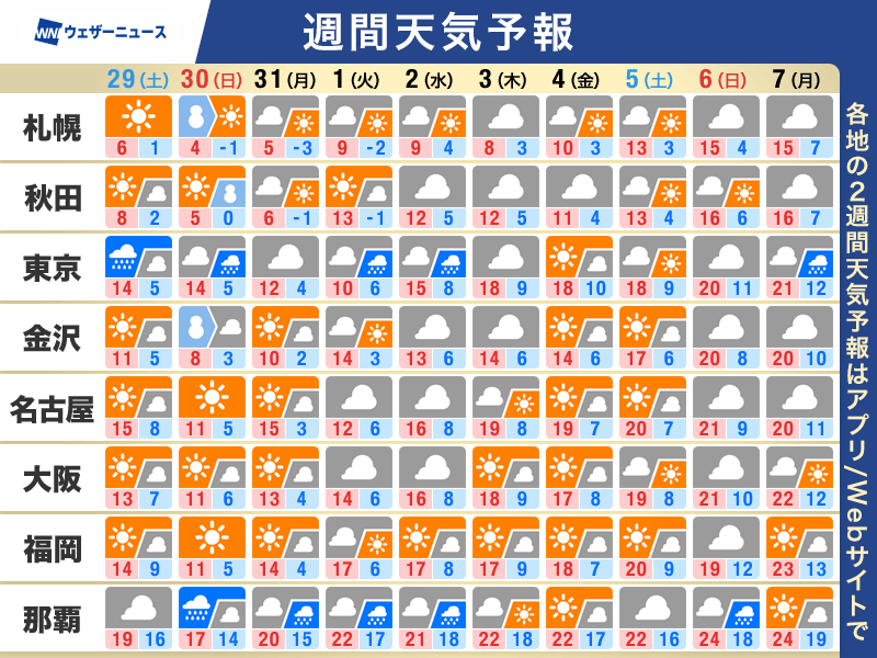 週末以降の外出時やお花見の際には、これまでの暖かさから、思った以上に寒く感じるかもしれません。まだ、冬物の上着や厚手のインナーが活躍する場面もありそうです。服装や体調管理に十分注意しながら、新年度を迎える準備を進めると良さそうです。