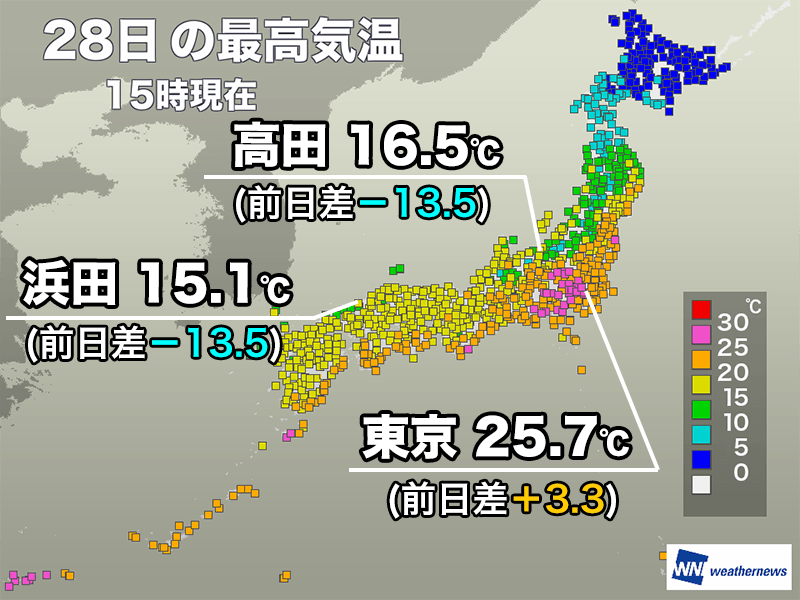 東京は25℃を超え今月4回目の夏日 日本海側は前日から気温急降下