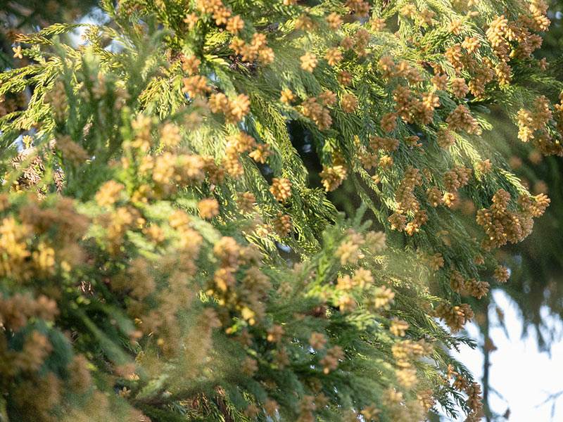 スギ、ヒノキ科は夏に花芽(はなめ)が成長するため、夏の天気の影響が翌年の花粉に現れます。影響が強い条件は、気温、日照時間、湿度です。