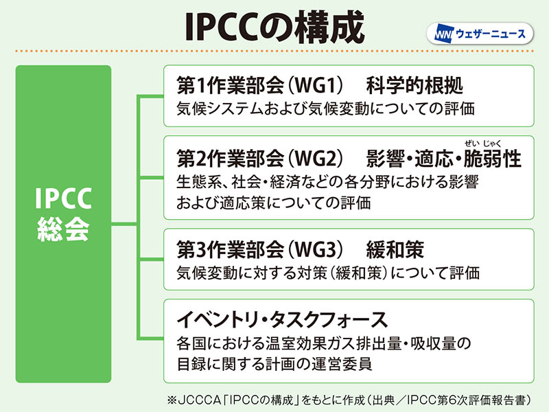 「IPCCは総会のもとに3つのワーキンググループ(WG/作業部会)が置かれています。
