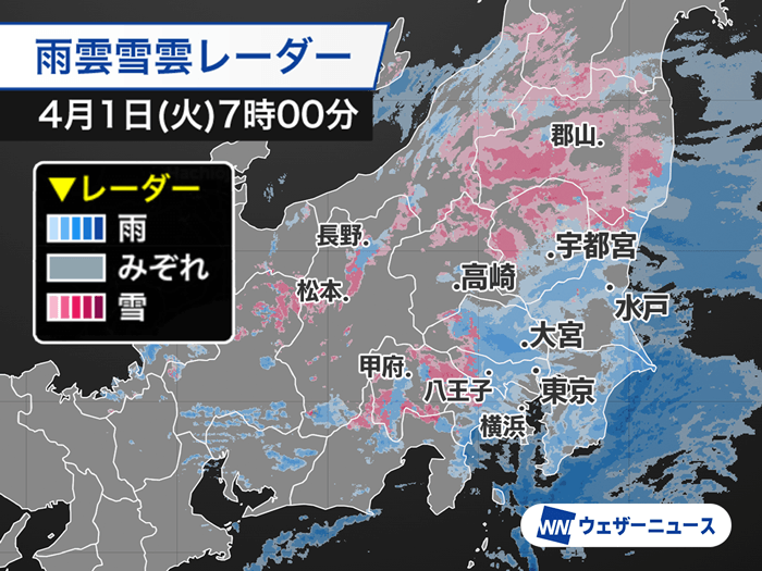 関東は冷たい雨で雪は一部のみ 昼間は真冬のような寒さに
