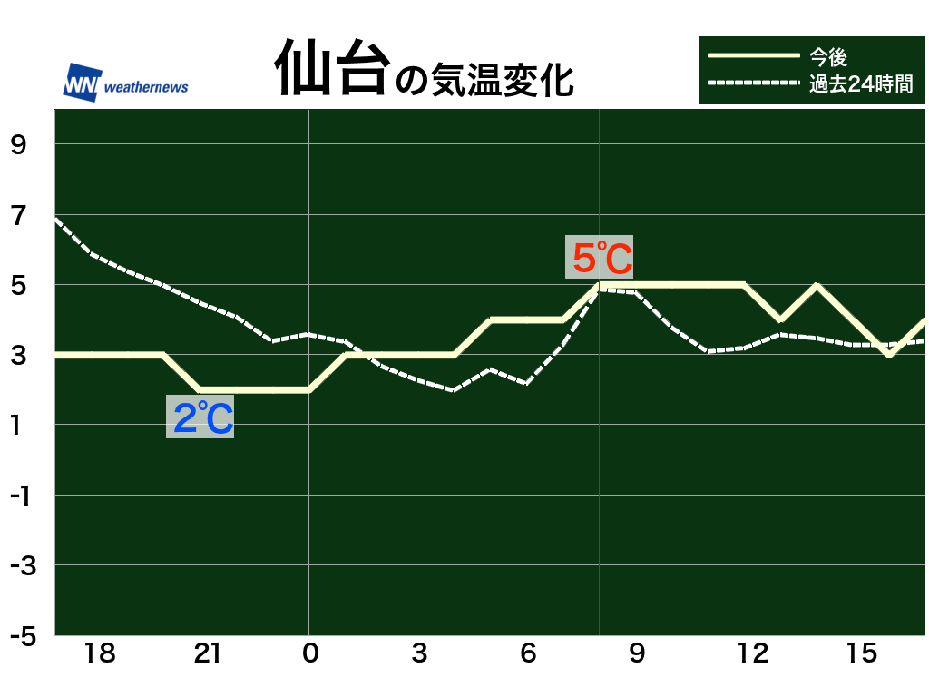 朝の寒さは今朝より幾分控えめでも、そこから気温はほとんど上がりません。冷たい雨雪や風で一層寒く感じそうです。
