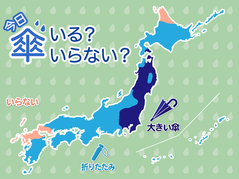 西日本や南西諸島も広範囲で雨の降る可能性があります。折りたたみ傘があると安心です。