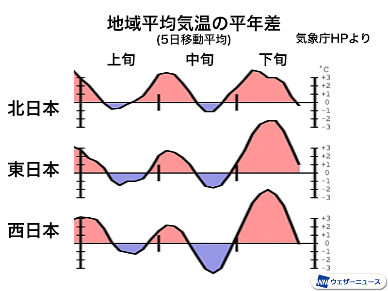 4月に入ってからは再び気温が低下していますが、今後は東日本、北日本を中心に平年よりも気温の高い傾向になるとみられます。