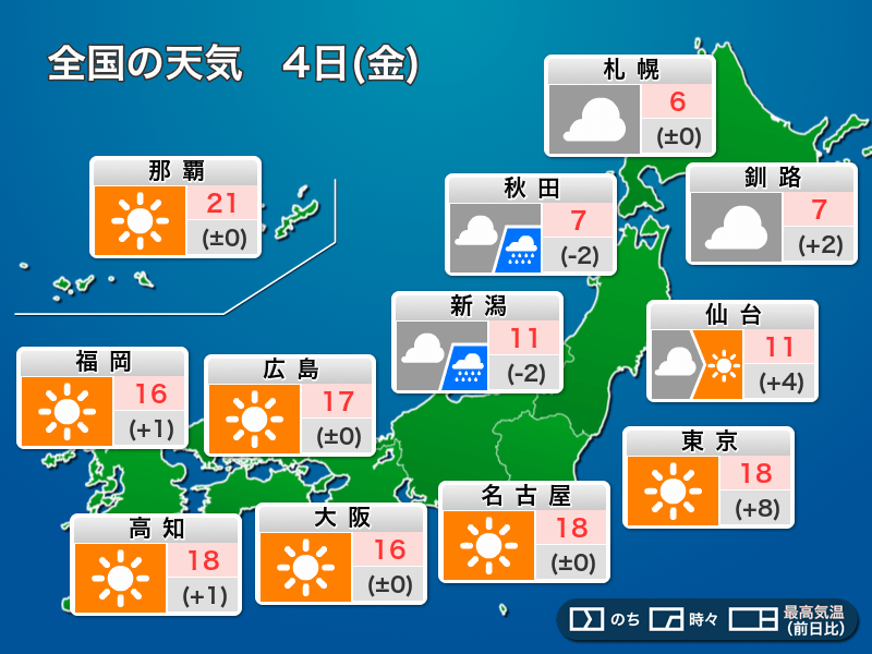 今日4月4日(金)の天気予報