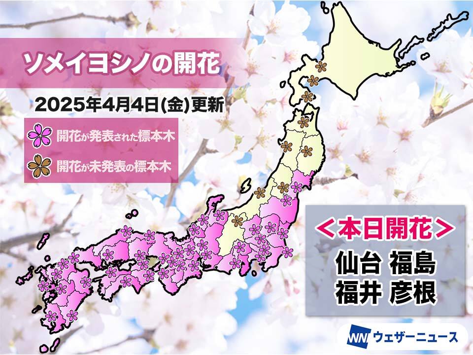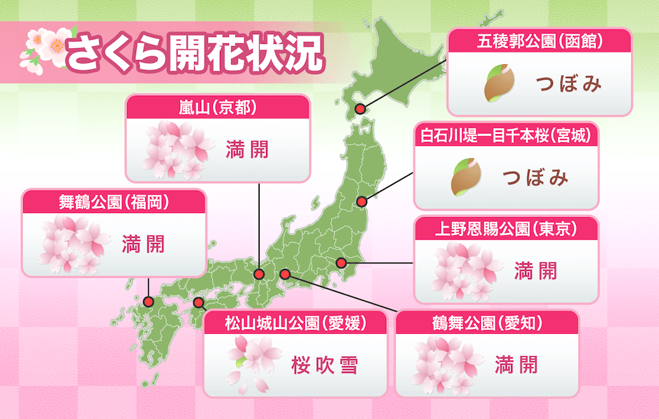今日の桜開花状況 4月4日(金) 横浜や大阪など8地点で満開 仙台や福島で開花発表