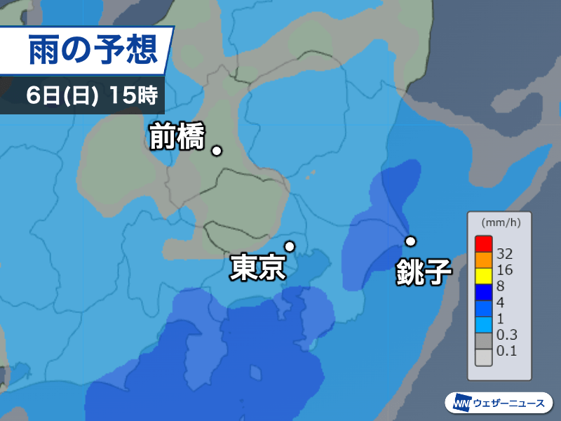今日6日(日)の関東は日差しの届いている所が多くなっています。ただ、神奈川県や千葉県など南部の一部では雨が降り始めました。