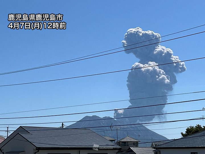 今日から明日8日(火)にかけては同じような風向が続く見通しですので、噴火した場合は大隅地方を中心に火山灰に対する注意が必要です。