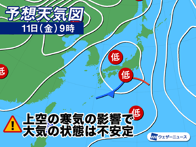 上空の寒気で大気の状態は不安定