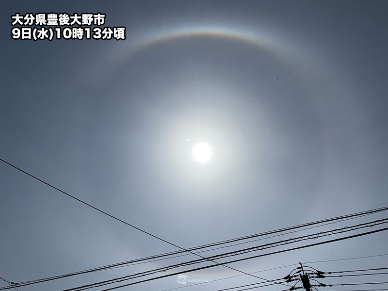 この低気圧の接近に伴って上空の湿りが増し、「ハロ」が出現したと考えられます。今日見られている「ハロ」は天気下り坂のサインと言えそうです。