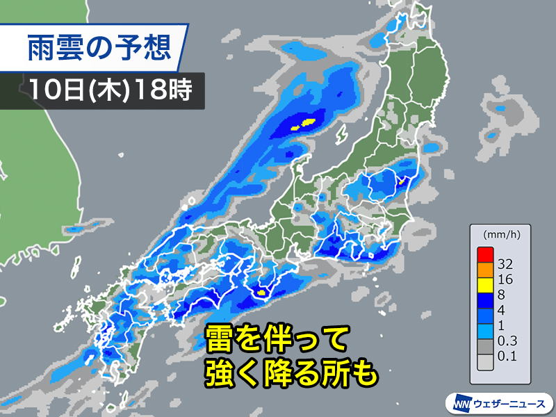 九州や沖縄などで本降りの雨 午後は東日本も傘の出番に