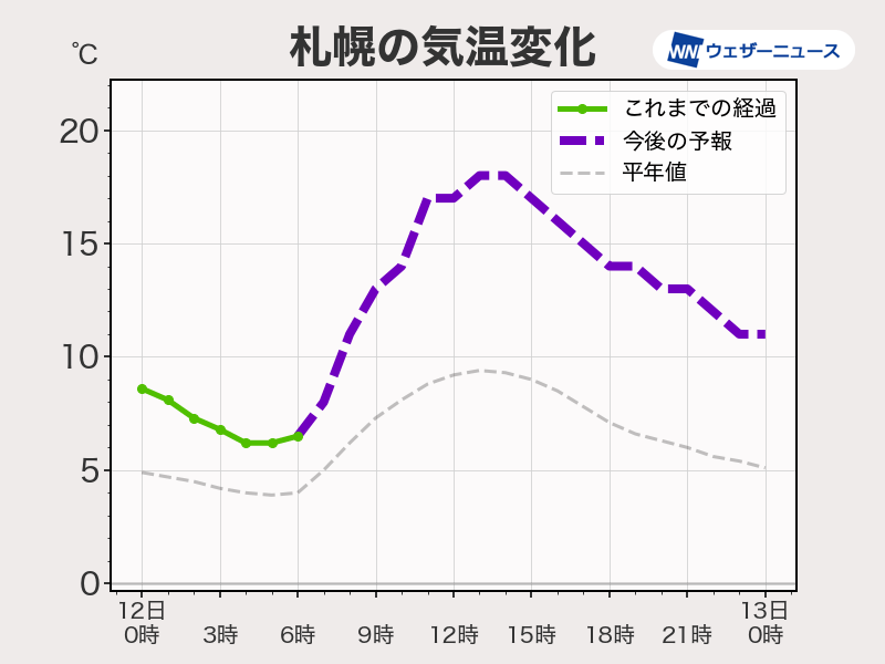 札幌は18℃まで気温上昇
