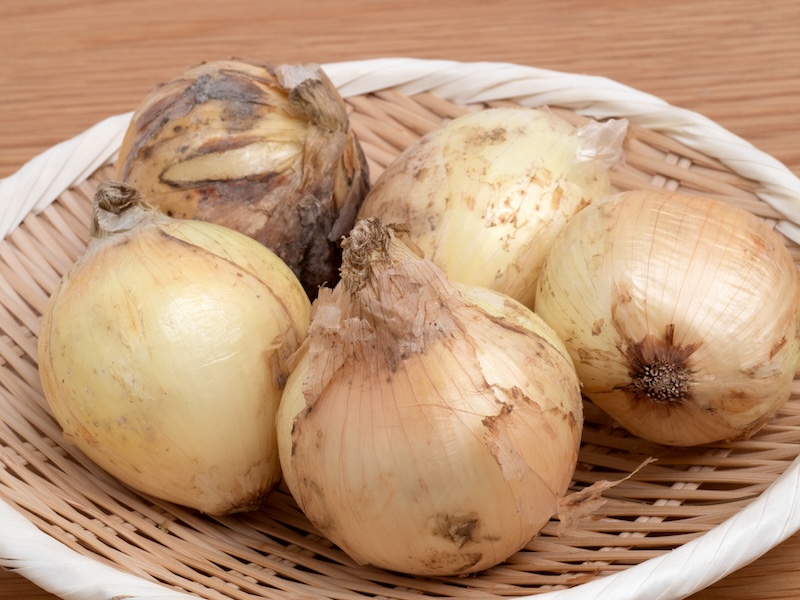 「玉ねぎは高温と湿気が苦手なので、常温で保存するなら袋から出してカゴやネットなどに移し、春までは風通しの良い冷暗所で保存してください。