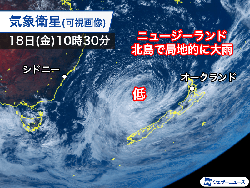 ニュージーランドの沖に大きな雲の渦 発達した低気圧で局地的に強い雨
