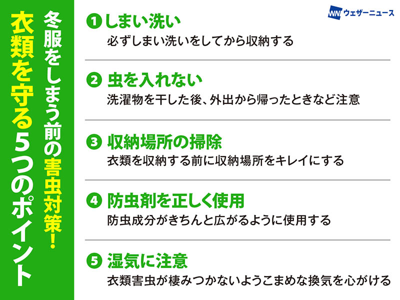 大切な衣類を守るための対策には、5つのポイントがあるといいます。