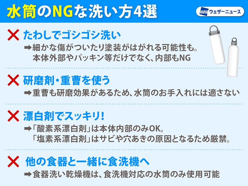 毎日大活躍の水筒、「しっかりお手入れしている」つもりでも、やってはいけないことがあるといいます。